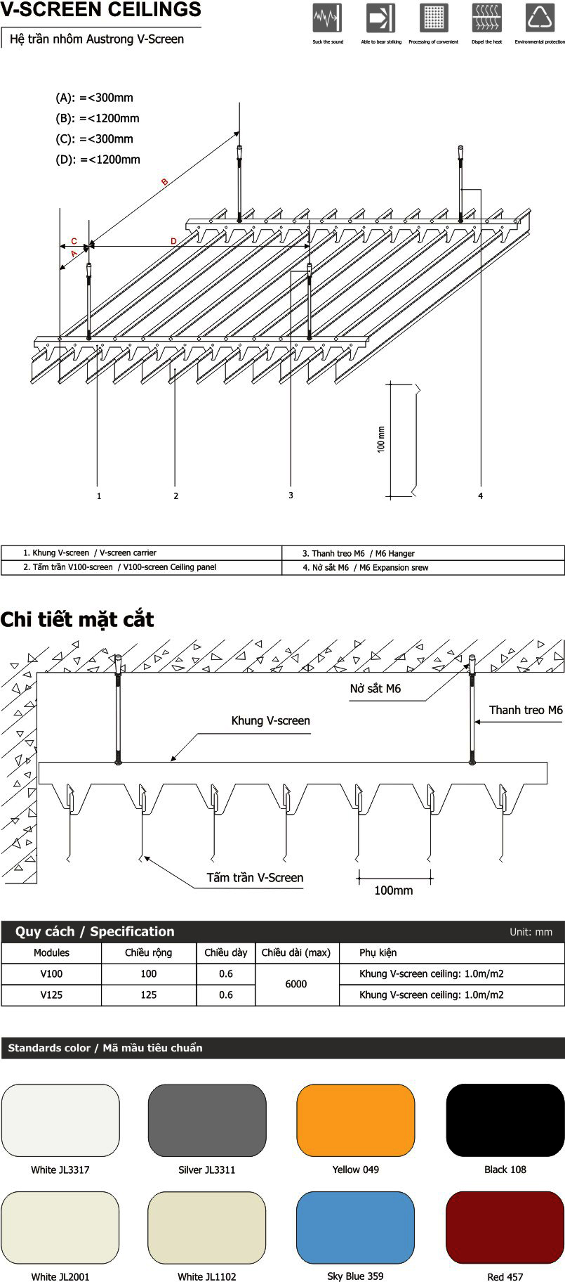 Cấu tạo sản phẩm: Trần nhôm V-Screen